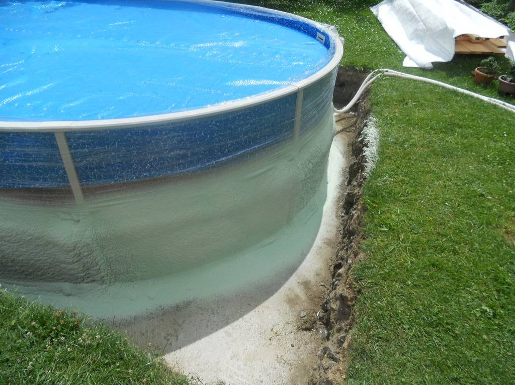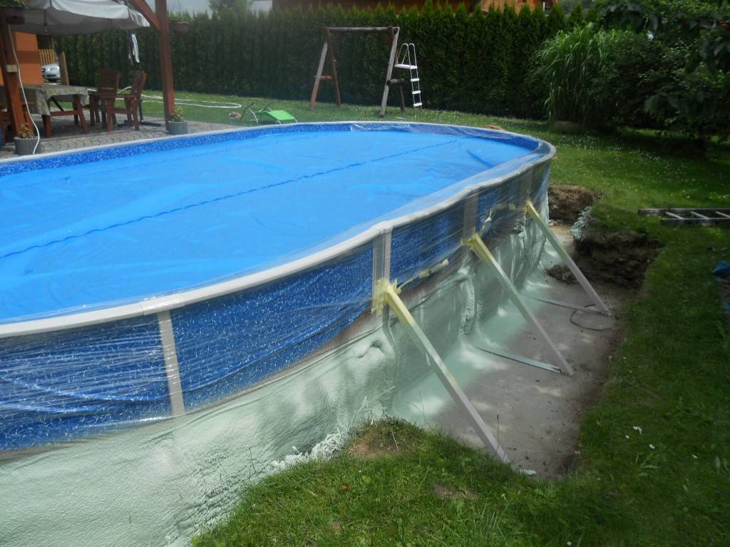 Tepelná izolace bazénu Česká VesTepelná izolace spodní části bazénu tvrdou izolační pěnou. Fotografie