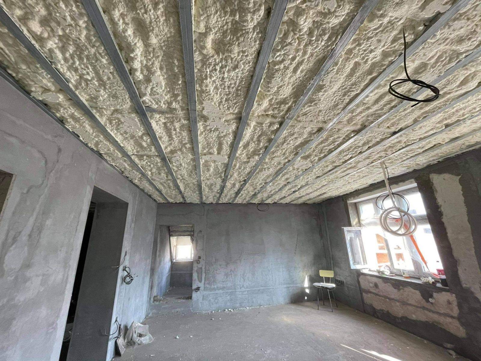 OlomoucDalší zateplené podkroví tentokrát v Olomouci. Měkká pěna aplikovaná do připravených SDK rastrů, nástřik 25cm.
