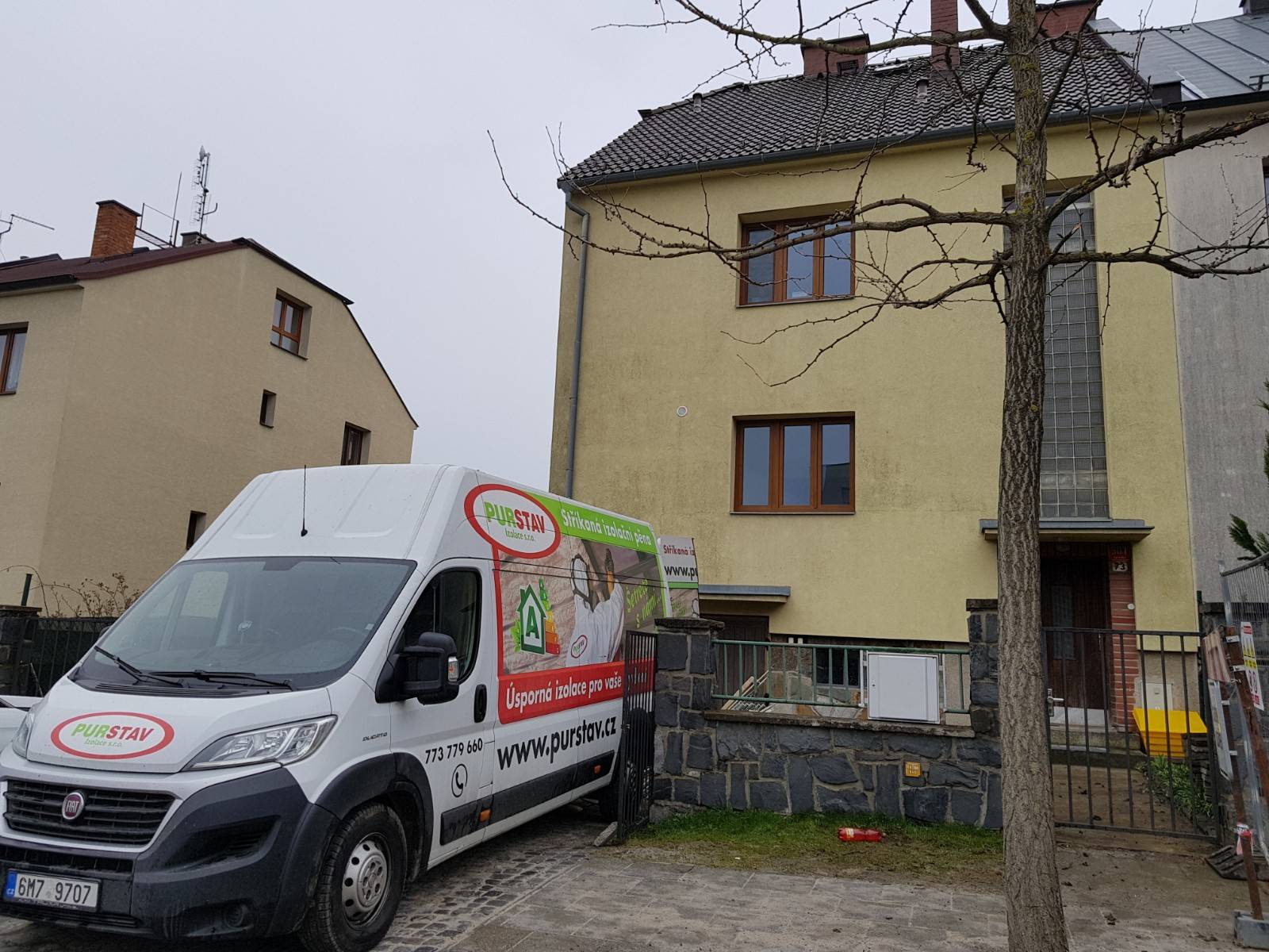 RD OlomoucIzolace podkroví od podlahy do hřebene, bez následného ořezu. Zákazník si objednal i izolaci garážových vrat, kde byla pěna po nástřiku začištěna.